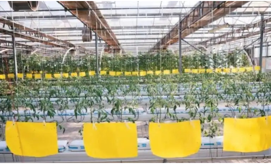 蔬菜大棚内布置的粘虫板
